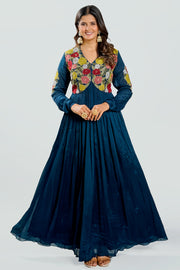 Fancy Blue Color Organza Fabric Readymade Gown