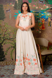 Elegant Off White Jumpsuit With Appliqué Handwork