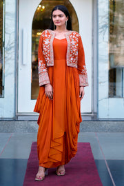 Rust Indo Western With Jardoshi And Knot Handwork