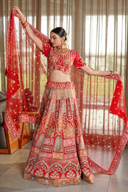 Red Color Captivating Heavy Embossed Embroidery Bridal Lehenga Choli