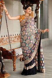Fetching Black Color Designer Half And Half Bandhej Pure Saree With Fancy Short Sleeve Blouse